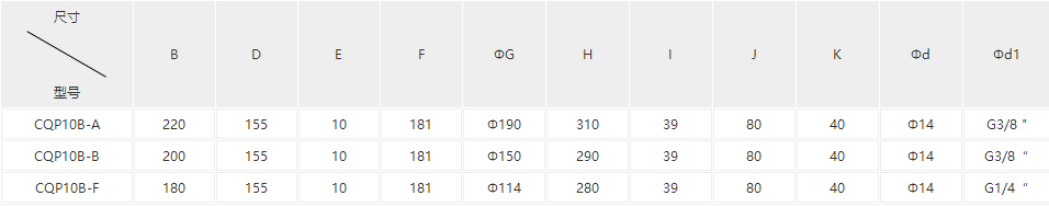 CQP10B型 技術參數(shù)見表一,外形尺寸見表二